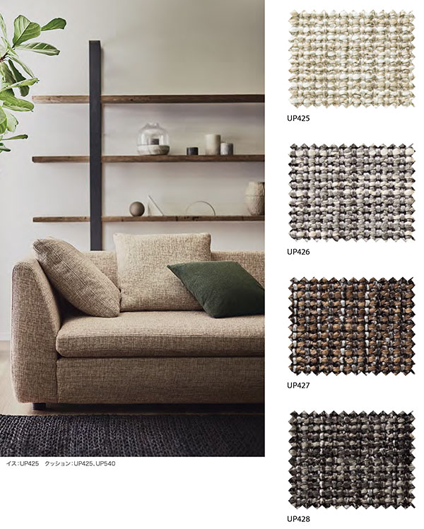 サンゲツ椅子生地 UP425,UP426,UP427,UP428の販売 こちらのページでは2020年発売のサンゲツ椅子生地カタログ「upholstery2020-2023」掲載商品ルヴィダ(UP425,UP426,UP427,UP428)が専門店の価格でご購入頂けます。